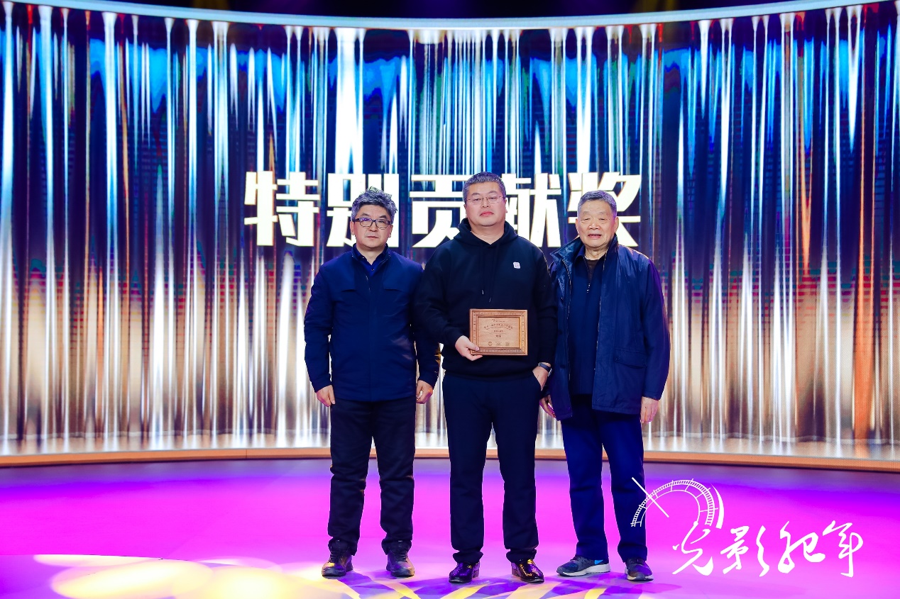 (礼仪后左起:著名电视纪录片人、中国文联终身成就电视艺术家刘效礼将军,张慧敏 代中国电影资料馆馆长、中国电影艺术研究中心主任傅红星领奖,四川省电视艺术家协会纪录片专委会主任、纪录片导演王海兵,CNEX视纳华仁联合创始人兼制作总监张钊维,中国文联电视艺术中心副主任赵彤)