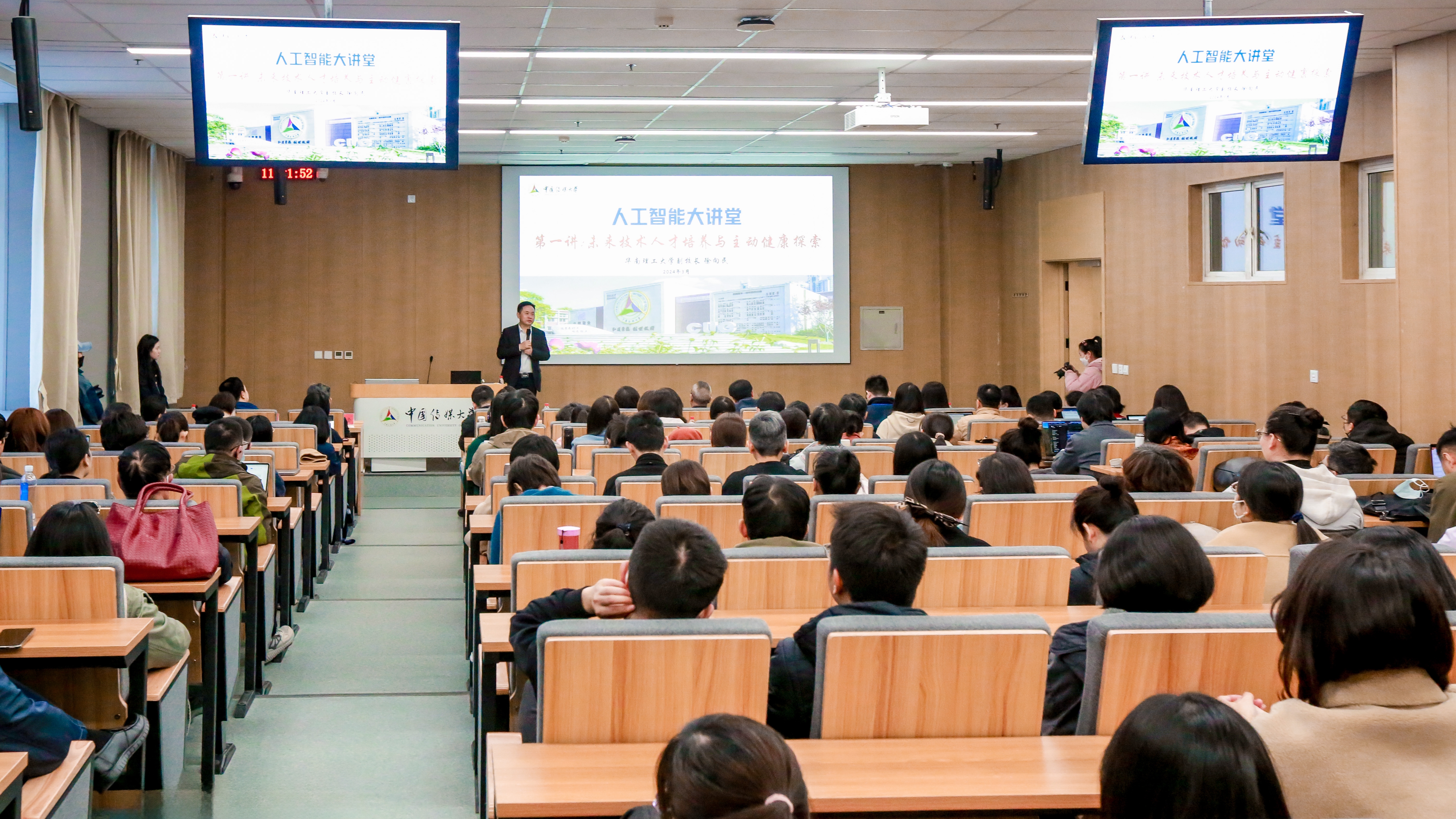 徐向民还应邀作为“人工智能大讲堂”第一讲的演讲嘉宾,在48号楼的多功能报告厅,为学校部分中层干部、广大师生作了题为“未来技术人才培养与主动健康探索”的报告。他从未来技术演变范式思考、未来技术人才培养探索以及大模型时代的主动健康三个方面展开深入阐述,强调了探索未来技术的深远意义与巨大价值,详细介绍了华南理工大学未来技术学院“引领者+跨学科+跨系统”的人才培养模式。同时提出,应以人为中心、以产业需求为导向、以技术创新为动力,推动主动健康产业发展,服务人民群众对美好生活的向往。