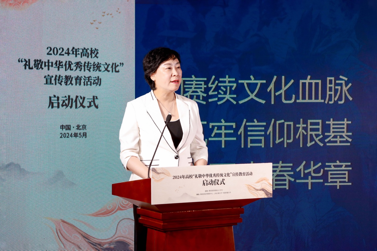 夏越宣布2024年高校“礼敬中华优秀传统文化”宣传教育活动方案发布。本届活动由教育部思想政治工作司主办,教育部宣教中心、上海交通大学承办,多家单位共同协办,以“赓续文化血脉 筑牢信仰根基 谱写青春华章”为主题,以社会主义核心价值观为引领,通过“国学史园”知识竞答、“创承文脉”高校主题数字微展览联展、“铸魂润心”文化育人创新工作案例、“百物匠心”非遗技艺传承创新视频微课等多项专题活动,引导广大高校师生坚定文化自信,坚持守正创新,着力赓续中华文脉,发展社会主义先进文化,弘扬革命文化,推动中华优秀传统文化创造性转化和创新性发展。