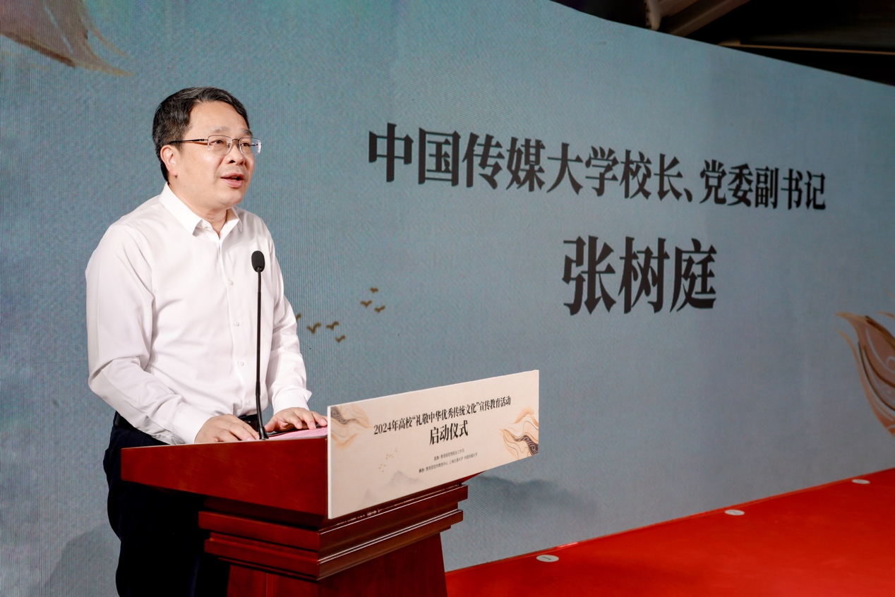 张树庭在致辞中对出席活动的教育部和各兄弟高校嘉宾表示热烈欢迎。他指出,高校有责任肩负起传承和弘扬中华优秀传统文化的重任,切实提高宣传教育活动的质效,让中华优秀文化在校园里传播,在年轻人心里生根,在世代中华儿女中传承,确保中华文脉创新发展,永续传承。此次活动与展览有助于引导广大师生亲身感受中华文化的悠久历史和璀璨成就,深入了解和认同中华优秀传统文化,切实增强文化自信和民族自豪感。
