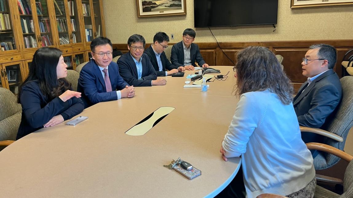 5月13日,代表团到访阿尔伯塔大学(UA),与该校副教务长兼自然与应用科学学院院长马蒂纳·卡尔库尼斯·鲁伊佩尔,副教务长兼社会科学、人文学院院长马文·华盛顿进行了会晤,并与文学院、理学院的教授团队和艺术与设计系主任进行了座谈。李新军和代表团成员介绍了我校办学优势以及在海南举办中外合作办学的整体战略规划,详细介绍了游戏与电竞、视觉传达、传播设计等专业人才培养及产教融合创新的愿景。阿方表示,这次交流加深了两校间的相互了解,中国传媒大学与阿尔伯塔大学在相关学科领域的发展理念高度契合,希望未来两校相关学院在课程交流、师资互访、学生交换、大师课等多个方面加强联系,进一步推动相关学科领域的合作与交流。