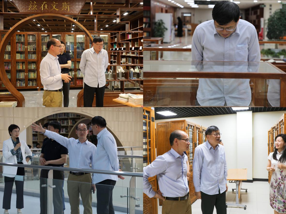 讲座结束后,韩永进在图书馆馆长龙小农、人类命运共同体研究院院长李怀亮等的陪同下,参观了图书馆中传学者文库、何其芳阅览室、古籍书库、外文阅览区等各类阅读空间,并参观了图书馆大厅正在举办的“卷帙多情 只此红楼——何其芳藏《红楼梦》及各种续书”版本展。