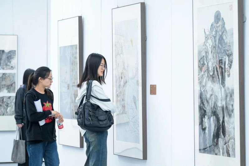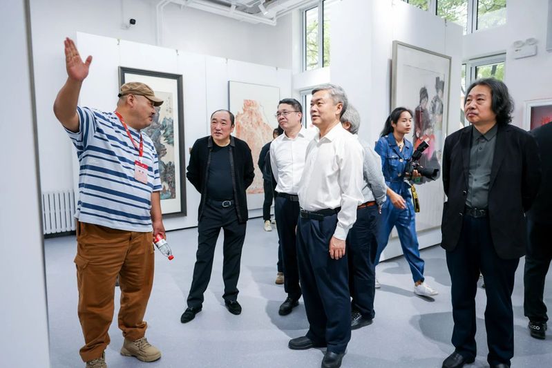 仪式结束后,与会嘉宾在卢禹舜院长的引导下参观了中国画博士班师生作品展。展览汇聚了中国画博士生导师的精品力作及博士生们的创新佳作。这些作品不仅展现了传统水墨的深厚底蕴,更通过现代技法的融入,赋予了中国画新的生命与活力。每一幅作品都是对中华优秀传统文化的深情礼赞,也是对新时代艺术创新的积极探索,体现了师生在传承与创新中的不懈追求。