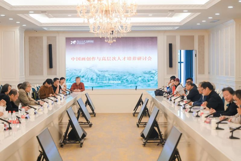 在随后举行的中国画创作研究座谈会上,中国画研究院博士生导师围绕中国画人才培养和中国画创作提出宝贵意见,表示要在坚守传统的同时,积极探索与现代艺术理念和新媒体技术的融合,激励博士生们以传统为基大胆创新,成为推动中国画发展的新生力量。座谈会由美术与书法教指委委员、中国传媒大学博士生导师邵军主持。