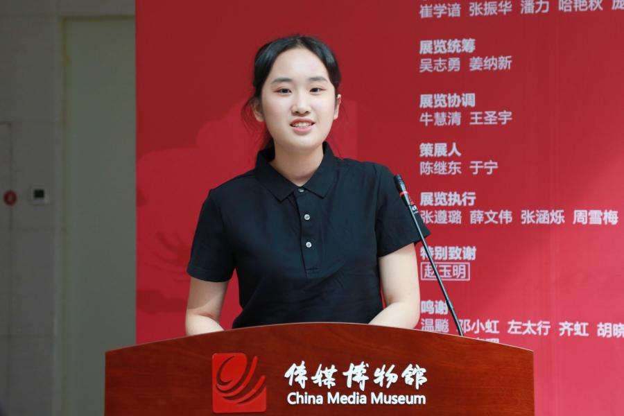 在校大学生代表校外国语言文化学院2021级尼泊尔语专业学生姚彦玮在发言中分享了作为展览志愿者的感悟。她表示,在整理这些泛黄的手稿和斑驳的照片时,仿佛在与前辈们进行跨越时空的对话。那些历史的遗物,记录了广播先辈们用声音传递希望与力量、用笔触铭刻时代脉动的每一个瞬间。作为新时代的传媒学子,我们不仅要继承前辈们的光荣传统,更应以创新的精神和全球化的视野,续写属于新时代的辉煌篇章。