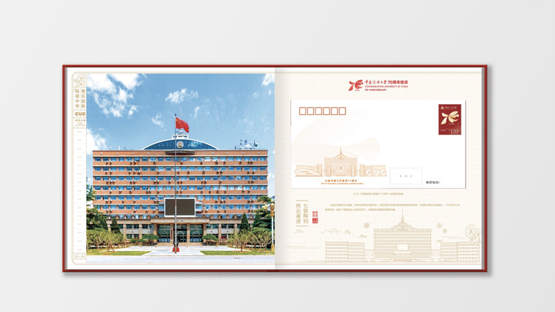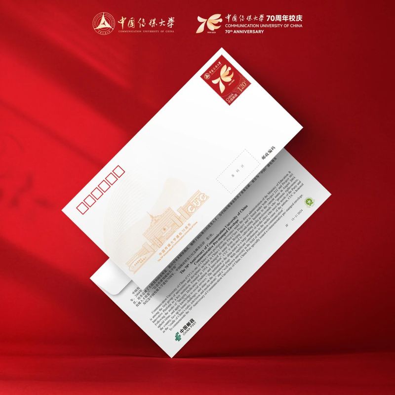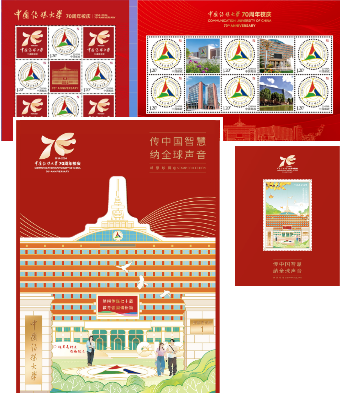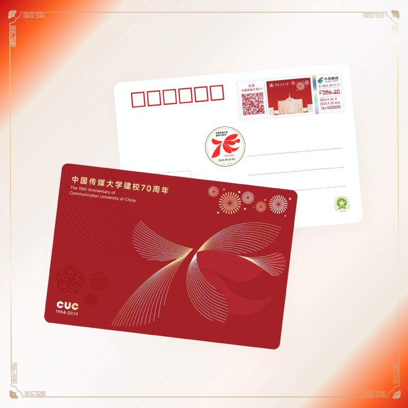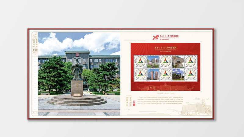 配有《中国传媒大学70周年校庆》纪念张