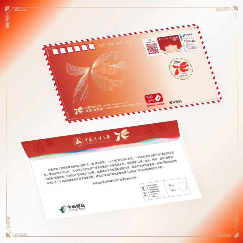 《中国传媒大学建校70周年》纪念邮资信封