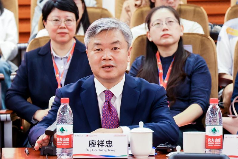 廖祥忠深情回顾了去年12月访问越南时的情景,介绍了与越南高校达成共识,联合召开对话会的过程。他表示,为落实好两国领导人的战略部署,续写新时代中越友谊,中国传媒大学牵头筹办本次会议,旨在以新闻传播教育为纽带,推动合作实质化。这是一场双向奔赴、如约而至的盛会,一场学习精神、落实部署的盛会,也是一场谋划未来、同向同行的盛会。他建议,明年是“中越人文交流年”,两国高校要抓住机遇,构建长效对话机制,以人文交流为引领,不断拓展新闻传播教育的内涵与合作领域。中国传媒大学将一如既往为两国高校交流合作做好平台搭建工作。