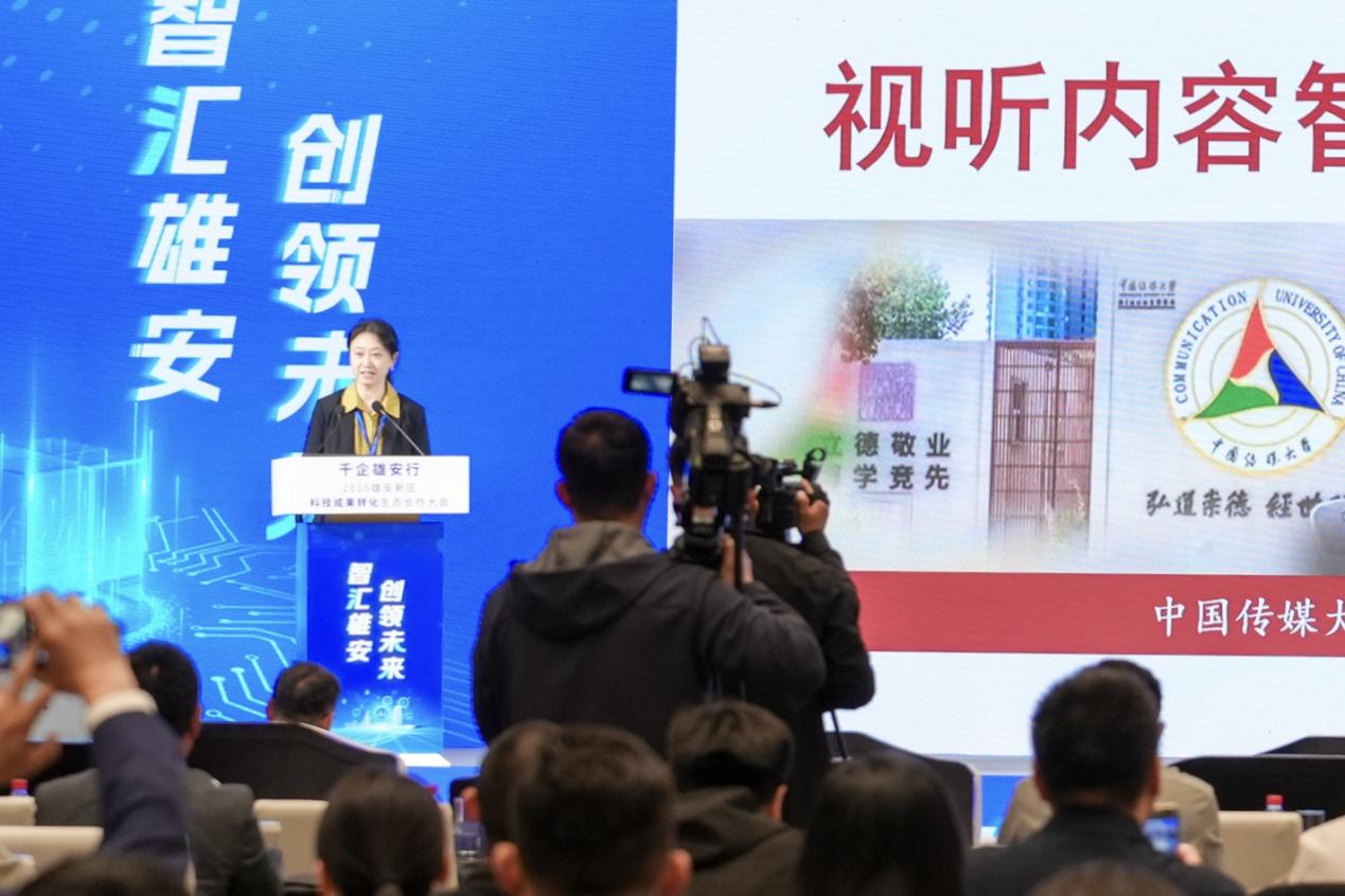 (通讯员 张亚娜 刘明君)4月10日,以“智汇雄安 创领未来”为主题的“千企雄安行——2025雄安新区科技成果转化生态合作大会”在雄安新区举办。中国传媒大学党委常委、副校长柴剑平出席会议。信息与通信工程学院副院长李树锋、数字媒体技术系主任杨成参加会议,广播电视工程技术系主任张亚娜在大会做《视听内容智能生产服务平台》成果发布。