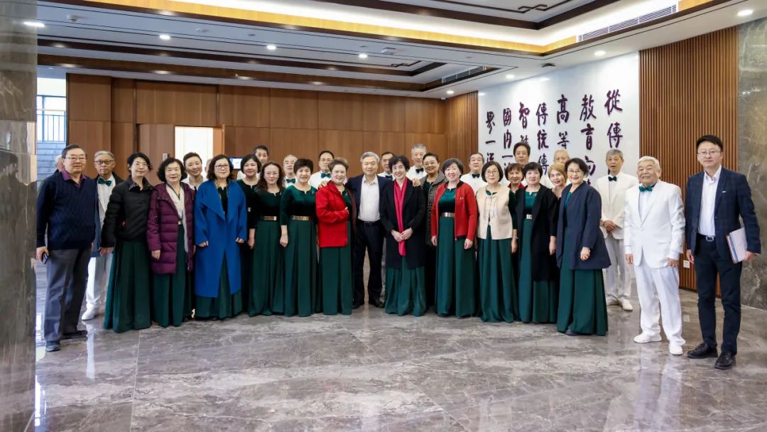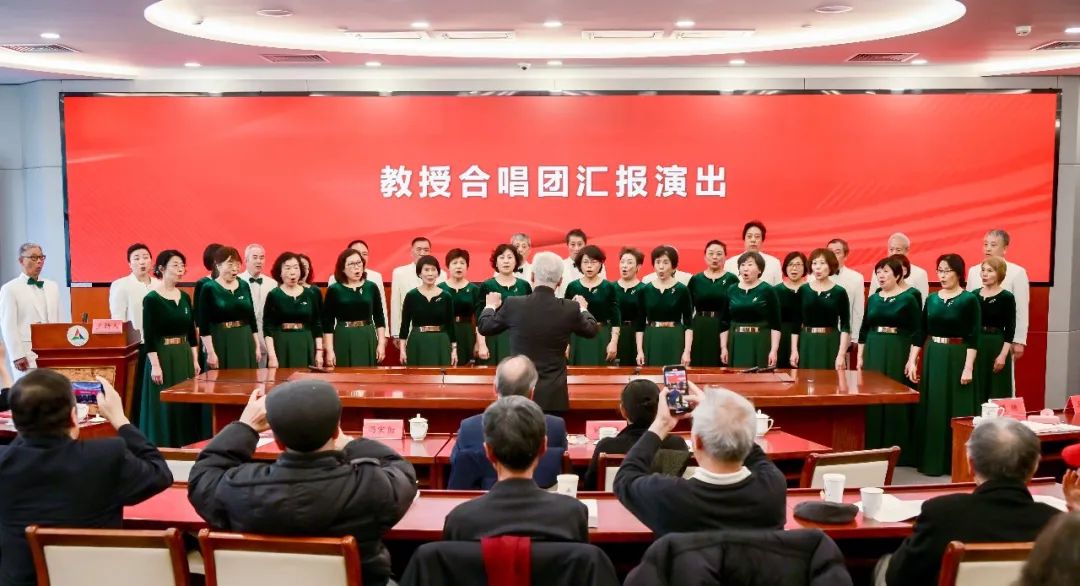 中国传媒大学教授合唱团献上精彩演出,用歌声传递老教授们对教育事业的热忱与坚守。年近九旬的肖恩芳教授难掩激动心情即兴献唱。