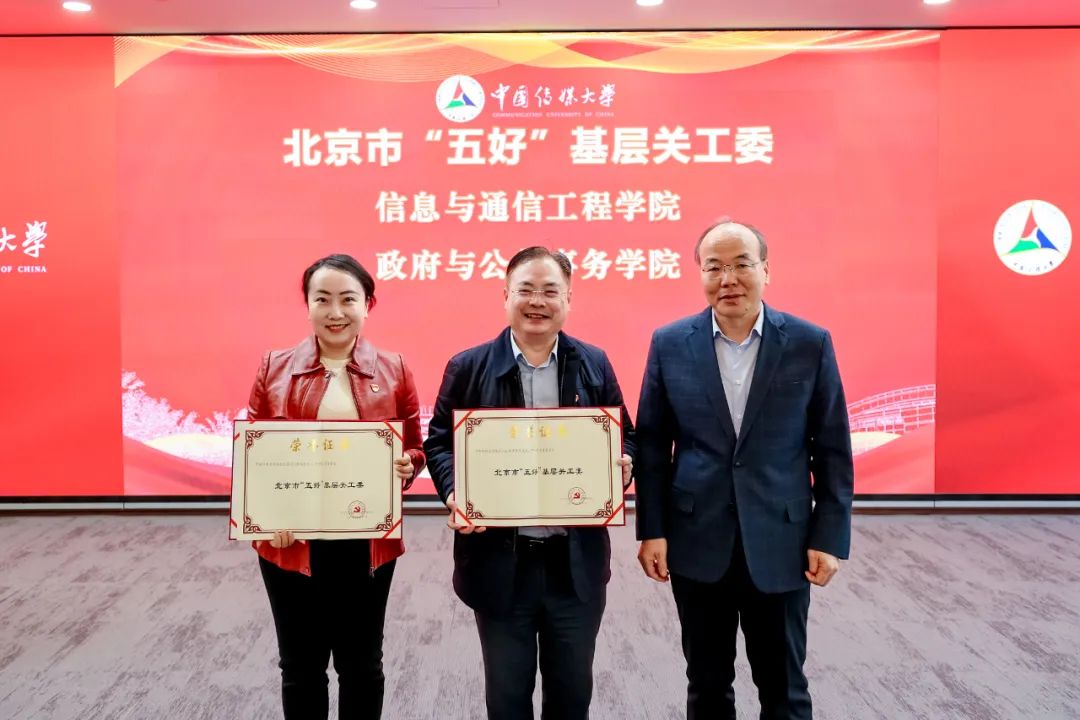 刘守训为获评北京市“五好”基层关工委的二级学院关工委颁发荣誉证书。