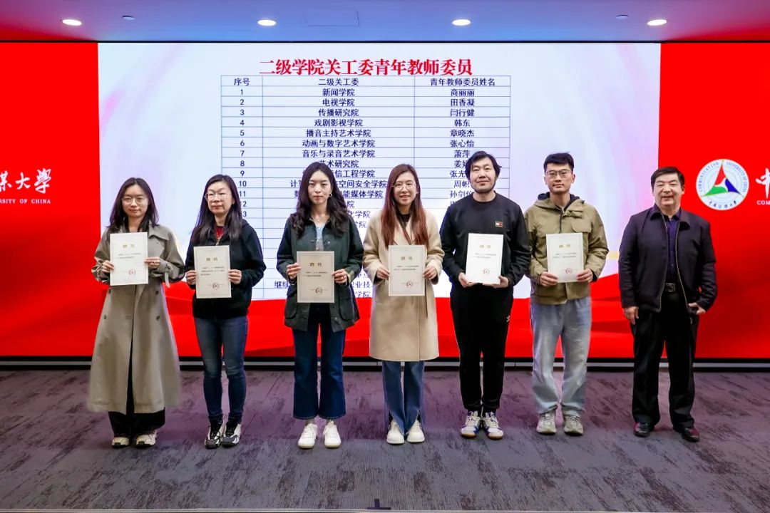 姜绪范代表学校关工委为二级学院关工委青年教师委员代表颁发聘书。