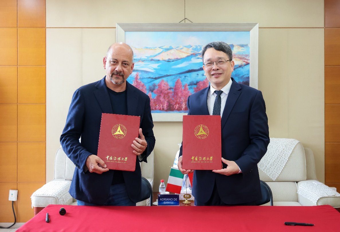 会谈结束后,张树庭与阿德里亚诺代表两校签署合作协议。