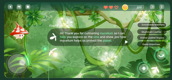 创作团队希望通过创新的游戏形式,引导人们关注生物多样性和可持续材料的重要性。游戏融合了线上虚拟体验与线下实践活动。玩家需要在现实中记录菌丝体成长过程,这些内容会转化为游戏进度,解锁不同阶段的环保任务和教育内容。通过拯救不同的动物角色,玩家能够直观感受到蘑菇皮革对传统皮革产业的生态替代意义。