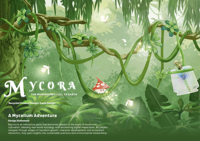 获奖作品Mycora(中文名:蘑菇的地球呼唤)构建了一个以蘑菇世界为主题的虚拟体验,通过创新的游戏流程设计,将菌丝体培育与环保理念巧妙融合,让玩家通过亲手培育菌丝体,参与环保任务,建立与自然的情感连接。游戏设计采用了四大核心模块:菌丝体生长体验、菌类特性教育、环保意识提升和社交互动分享,形成完整的游戏闭环。作品通过游戏化方式传递可持续发展理念,将科学知识与艺术表现完美结合,体现了数字创意与环境教育的创新融合。