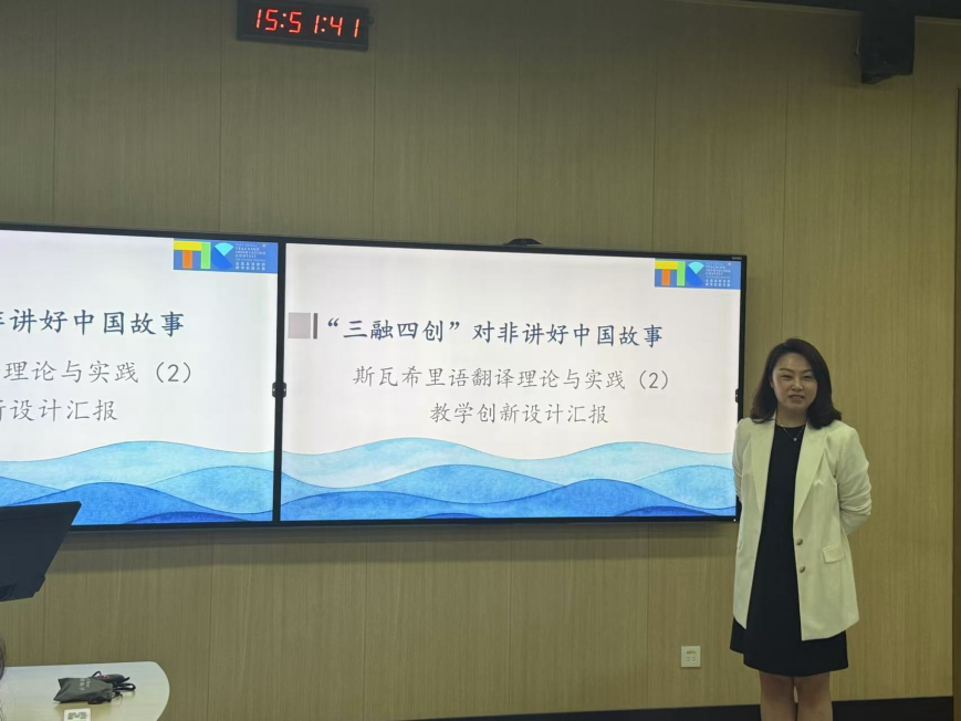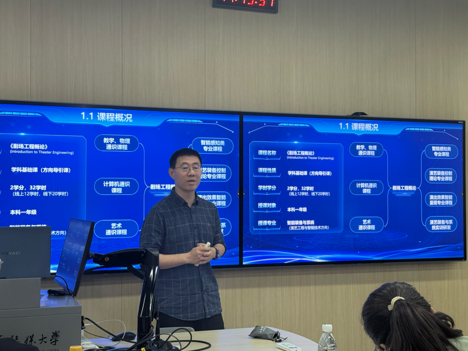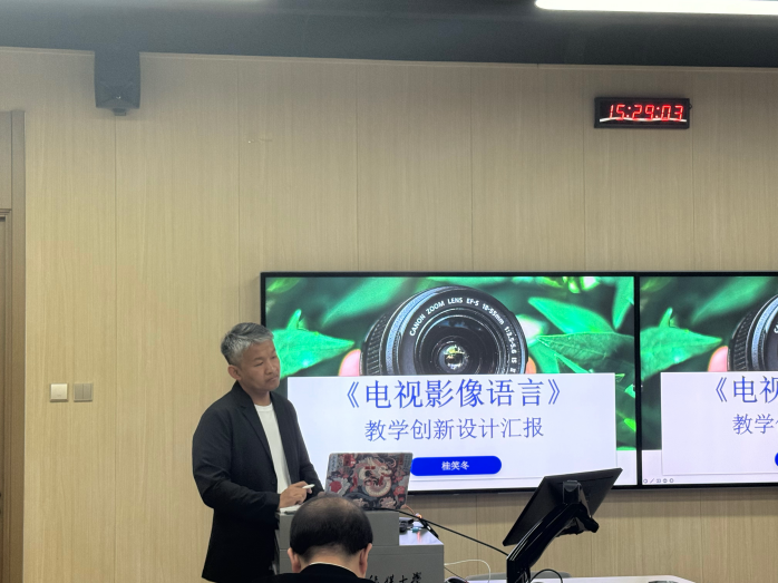 在课程展示环节,信息与通信工程学院的蒋玉暕老师阐述了《剧场工程概论》课程从“学工程”到“工程师”情境任务驱动的课程设计创新;电视学院的桂笑冬老师介绍了《电视影像语言》课程“五维育人”的教学创新思路;外国语言文化学院的敖缦云老师分享了《斯瓦希里语翻译理论与实践》课程如何基于对非讲好中国故事所开展的“三融四创”教学模式创新。