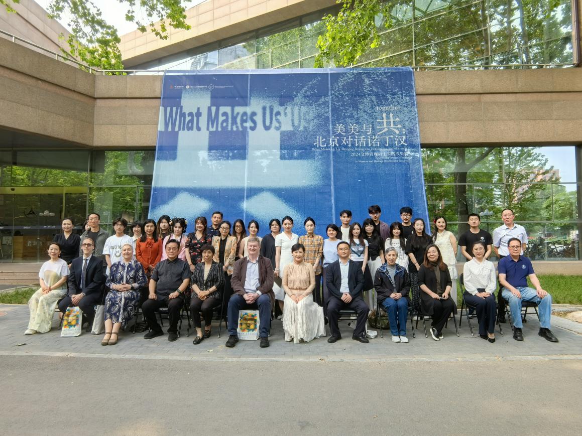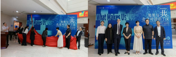 仪式开始,于平、徐红梅、潘力、龙俊、何苗、金夷、Stuart Burch等共同为“美美与共:北京对话诺丁汉——2024级文博管理硕士实践成果展”揭开帷幕。