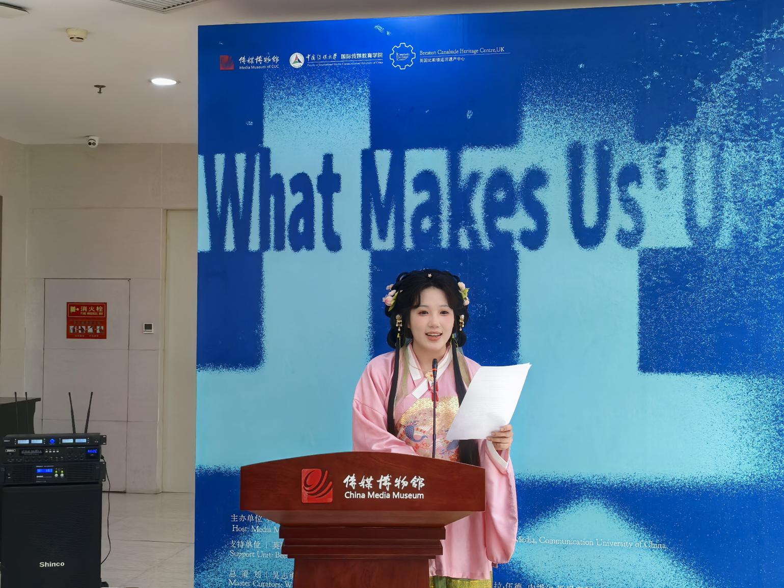 随后,龙俊在致辞中,充分肯定了国际传媒教育学院与英国诺丁汉特伦特大学合作的中外合作办学文博管理项目。他表示,作为三方共建的中外合作办学项目,始终致力于培养具备全球视野、跨文化理解与媒介表达能力的青年文博人才,本次展览正是学生将课堂学习转化为文化实践的重要成果。