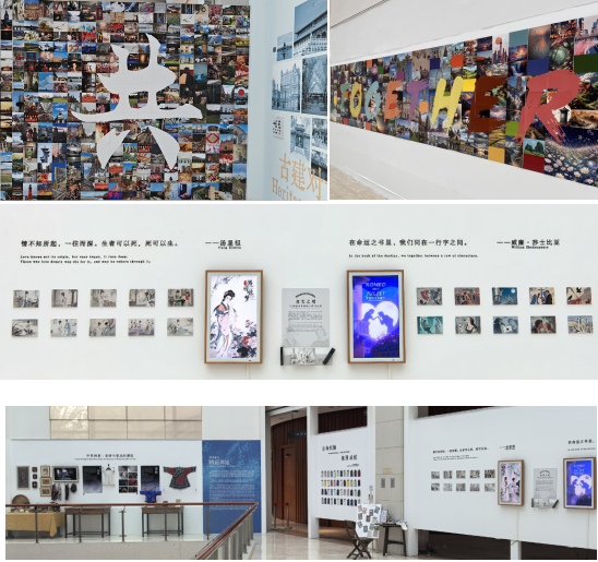 从“共”字图像墙,到传统与现代表达的声音墙;从中英经典戏剧的AI创作,到观众可感可触的中英工艺品与器物,以及可参与的together互动墙,每个单元都试图呈现差异与融合、记忆与未来之间的张力与共鸣。