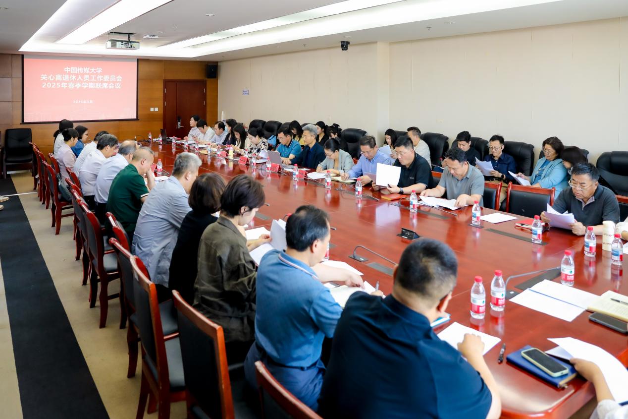 (通讯员 赵家仪 摄影 王愉扬)为深入贯彻落实习近平总书记关于老干部工作的重要指示精神,进一步推动关心关爱离退休人员工作高质量发展,5月26日,中国传媒大学召开关心离退休人员工作委员会联席会议。党委副书记、关心离退休人员工作委员会常务副主任张绍华,党委常委、副校长、关心离退休人员工作委员会常务副主任刘守训,关工委常务副主任、关心离退休人员工作委员会副主任姜绪范出席会议。学校22个职能部门和直附属单位负责人以及24个二级党组织负责人参会。会议由离退休工作处副处长兼离退休人员党委副书记张丽主持。