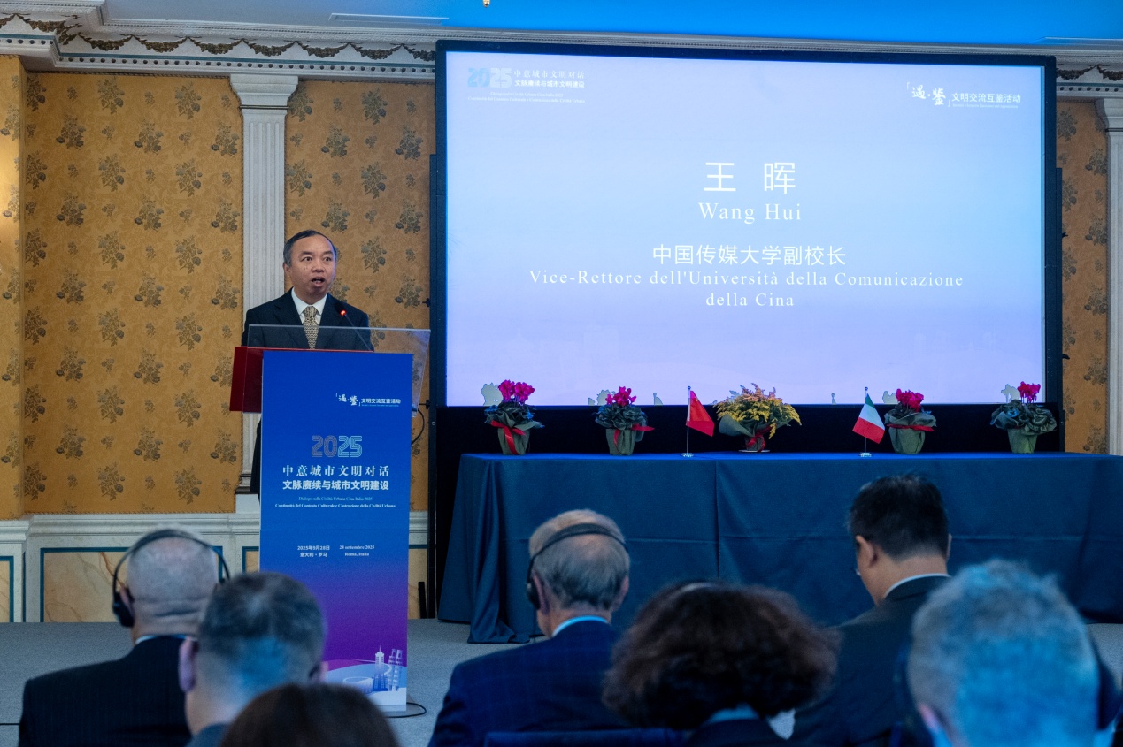 王晖副校长在主旨演讲中表示,城市不仅是文明的容器、创新的引擎和生活的空间,更承载着人类文明的共同记忆与未来想象。在中央有关部门指导和关心下,中国传媒大学成立了校级科研机构“城市文明研究院”,组成了涵盖中国各界的高层次专家委员会,旨在以中国实践推动城市文明创新。未来,我校将与各界伙伴通过参与城市更新、开展课题研究、培养青年学者等方式共同探索城市文明建设的新路径,推动中意两国乃至全球城市向着更加包容、更具韧性、更有人文关怀的方向共同进步。