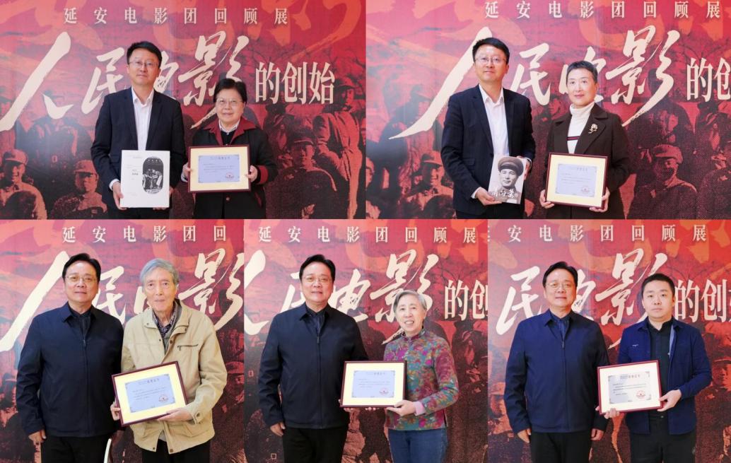 随后,在藏品捐赠仪式上,延安电影团亲属吴筑清女士、张岱女士、萧迎宪女士、钱泓先生和收藏家程昊先生向中国传媒大学传媒博物馆捐赠延安电影团相关资料和图书。中国传媒大学副校长杨懿、传媒博物馆名誉馆长潘力代表学校接受捐赠并向他们颁发证书。