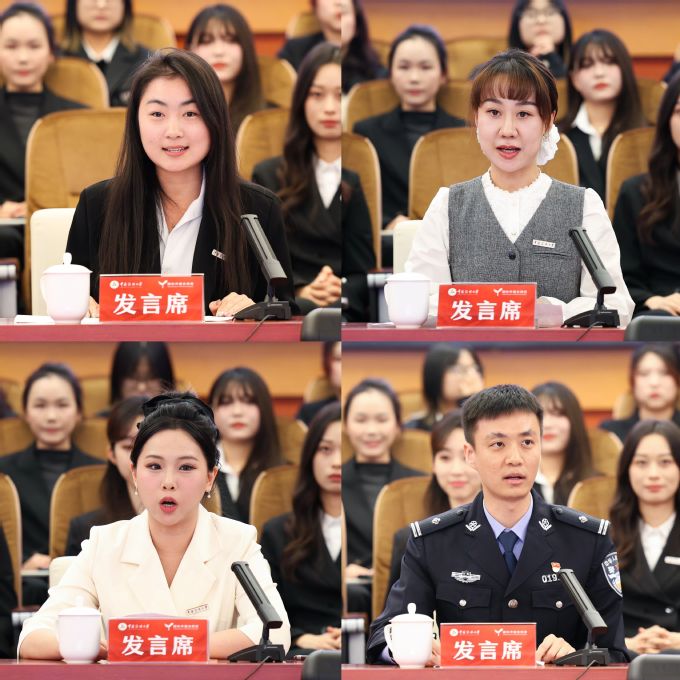 2024级博士生王琳作为老生代表,2025级硕士生郑力菲、2025级博士1班生孙林、博士2班生新华社记者孙奕作为新生代表,分别汇报了自己的学习感悟和心得体会。