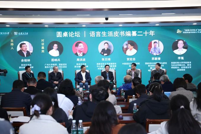 在圆桌论坛环节,与会专家围绕“语言生活皮书编纂二十年”“语言生活中的热点话题”展开热烈讨论。