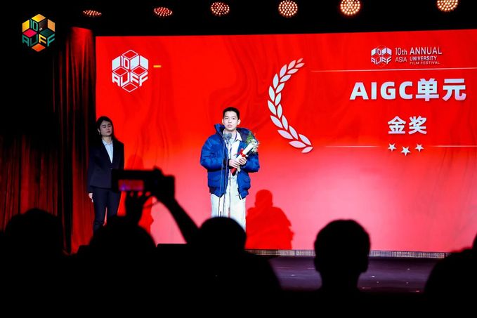 ▲ AIGC单元金奖获得者 中国传媒大学李骏辉