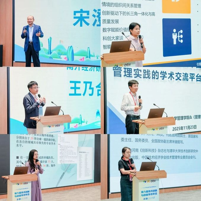 上海交通大学李垣、华中科技大学杨治、北京师范大学焦豪、上海财经大学刘志阳、上海大学于晓宇、中国传媒大学王栋晗,六位资深专家就企业技术创新、专利新颖性与成果转化、AI智能体与管理变革、大模型创业特征、科学智能与科创企业成长、AI赋能政策一致性等议题作主旨报告。
