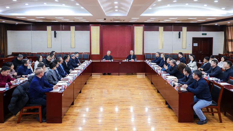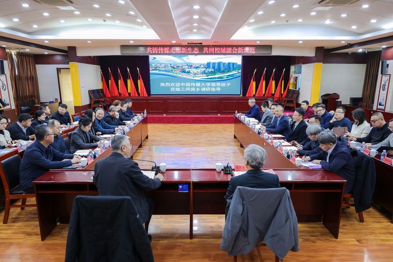 (摄影 申皓文)12月23日上午,中国传媒大学党委书记廖祥忠带队赴三间房乡走访调研,并召开校地合作专题座谈会。中国传媒大学领导班子成员、相关部门负责人以及三间房乡领导班子成员、相关科室负责人共同参会。