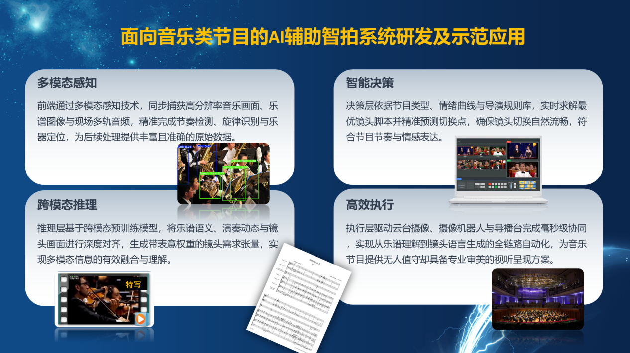 “面向音乐类节目的AI辅助智拍系统研发及示范应用”项目紧扣北京市“演艺之都”高质量发展战略部署,以国家大剧院的实际应用场景为需求牵引,采用企业牵头、高校深度参与的产学研协同模式开展攻关。我校信息与通信工程学院将组建项目组聚焦核心算法攻关与创新理论输出,研发总谱解析与智能创编等核心技术,推动演艺节目采集制作流程的智能化与标准化升级,最大程度降低制作门槛,有效辅助音乐类节目制播工作。未来,该系统将在国家大剧院进行部署并开展示范应用,有望形成可复制、可推广的行业标准解决方案,助力演艺产业实现从“劳动密集型”向“人工智能辅助型”的智能化转型升级。