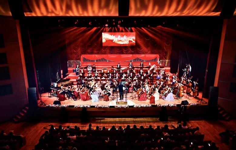 音乐会融汇中外经典,贯通时代精神,庄重而富有感染力。音乐会分上下两个篇章进行。上半场以中外经典交响作品为主线,依次呈现《拉柯齐进行曲》《威风堂堂进行曲》《法兰多拉舞曲》《鲁斯兰与柳德米拉序曲》《铁匠波尔卡》《香槟波尔卡》《葛佩利亚》选段以及《酒神之舞》,以庄重、明朗、热烈的音响层次,展现交响艺术的风格魅力。