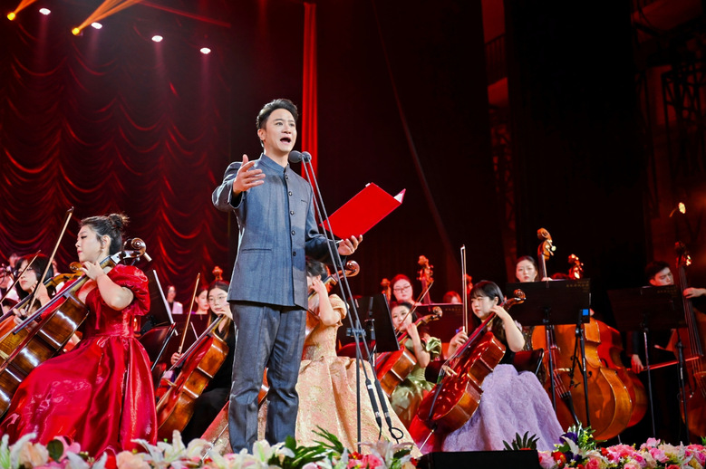 下半场的《黄河大合唱》由《黄河船夫曲》《黄河颂》《黄河之水天上来》《黄水谣》《河边对口曲》《黄河怨》《保卫黄河》《怒吼吧,黄河》八个乐章构成。青年演员白一弘担任朗诵,特邀男高音孟庆洋、男中音郭一熠、女高音杨镜伊倾情献唱;三弦演奏家高冠霖,中传民乐团团长、琵琶演奏者李怡潼,中国传媒大学青年爱乐乐团、合唱团联袂演出,完整呈现了这部承载民族记忆与时代精神的音乐史诗。
