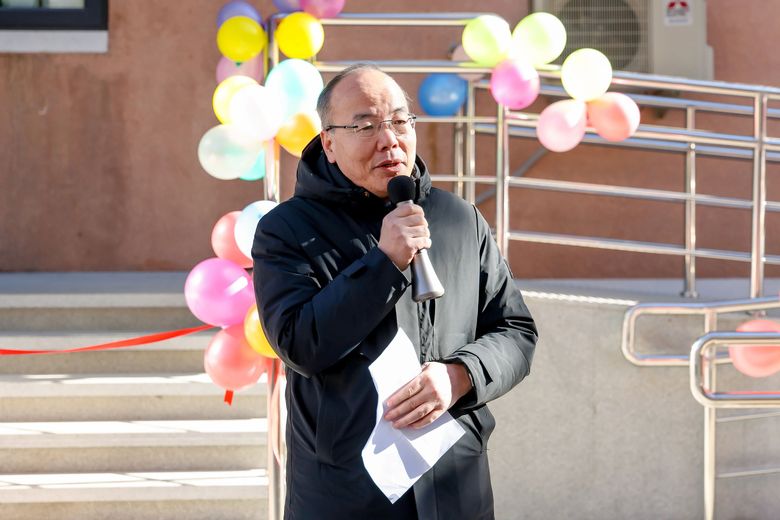 李新军代表学校向出席仪式的嘉宾、居民代表及参建单位工作人员致以热烈欢迎与诚挚感谢,并介绍了家属区电梯加装项目的推进背景与建设历程。他表示,老旧家属区加装电梯,是学校践行“以师生为中心”发展理念、深化“我为群众办实事”实践活动的关键民生举措,核心目标直指老年教职工及家属“上下楼难”的急难愁盼问题,旨在切实提升教职工的获得感、幸福感与归属感。工程推进期间,学校高度重视、统筹部署,各相关部门协同联动、合力攻坚;参建单位严守质量标准、抢抓建设工期,保障项目如期竣工、具备启用条件。