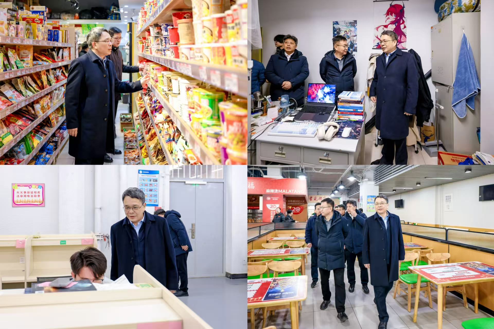 在梆子井学生公寓区京东超市和商超综合体,检查组重点检查食品与消防安全、电路敷设使用等情况,详细核查食品保质期、进货渠道及疏散通道情况,要求严格规范食品流通全流程管理,坚决守住食品安全底线,规范电气线路布设,确保消防通道时刻保持畅通。