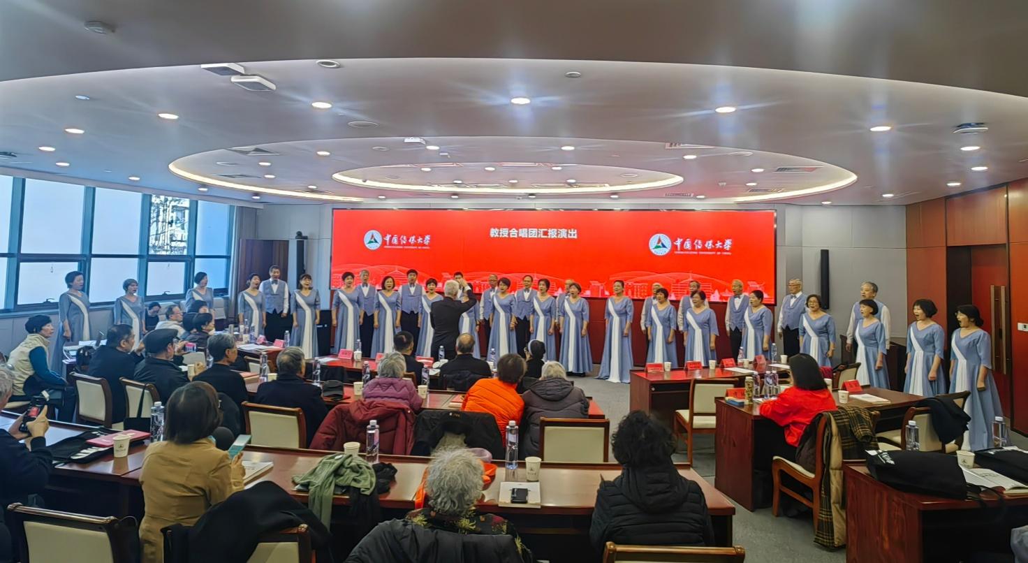 学校教授合唱团带来精彩的汇报演出,精神矍铄、歌声嘹亮,展现了昂扬向上的精神风貌和深厚的艺术素养,现场气氛温馨热烈。教授合唱团邀请学校领导和在场全体人员一同演唱校歌《校园里有一排年轻的白杨》。