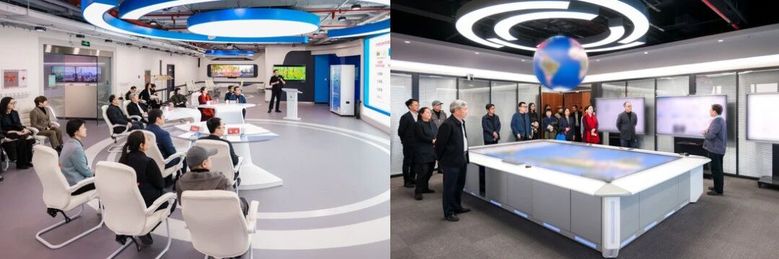 签约仪式前,傅若清带队走访中传校园,实地调研了媒体融合与传播国家重点实验室、国家舆情实验室、动画与数字艺术学院、艺术传播大楼、音乐厅、图书馆、教学楼等。