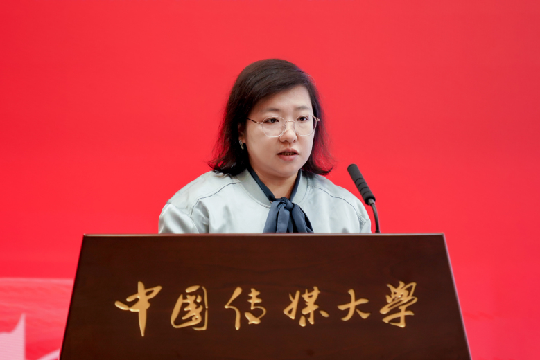 傅楠宣读《关于中国传媒大学关工委2025年“读懂中国”活动获奖名单的通报》。