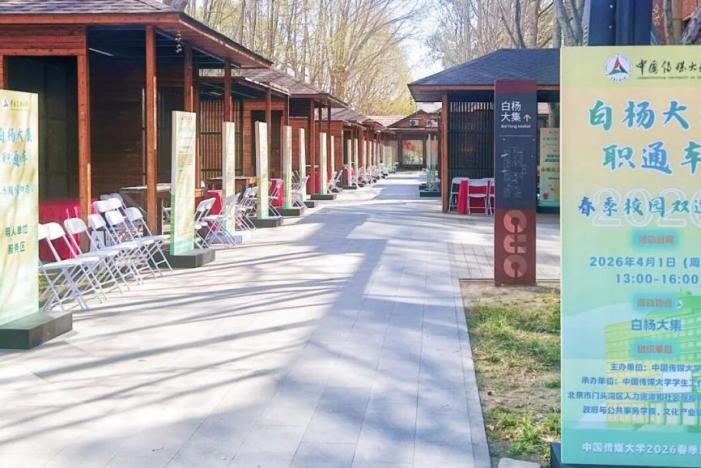 (通讯员 颜小琴 任涵 摄影 姚依然 颜小琴)春风送暖,职通未来。近日,中国传媒大学“白杨大集·职通车”2026届春季文科类校园招聘双选会在白杨大集顺利举行。本次双选会由中国传媒大学生工作部(处)、人文学院、文化产业管理学院、政府与公共事务学院联合北京市门头沟区人力资源和社会保障局共同举办。本次活动近40家优质单位到场,为我校毕业生提供对口岗位机会。