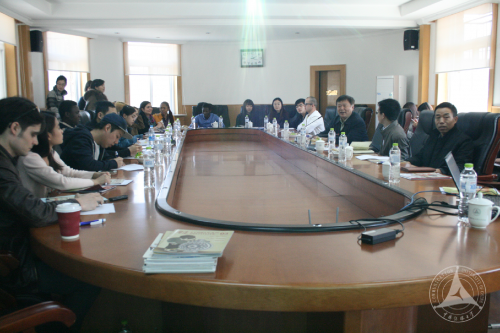 文法学部副学部长、孔子学院处处长逄增玉教授主持座谈,并在会上致词。他对汉办樊钉主编一行表示热烈欢迎,并对汉办对我校的重视和信任表示感谢。他表示,很荣幸我校被选为国内试点高校中的首家,希望同学们对汉办奖学金政策及《孔子学院》的办刊内容积极发言,提出意见和建议。孙杰书记代表学部对汉办一行表示欢迎,指出我校的留学生教育、汉语国际教育硕士和孔子学院等各项工作,长期以来得到汉办大力关照和支持,与我校孔子学院处联系密切。