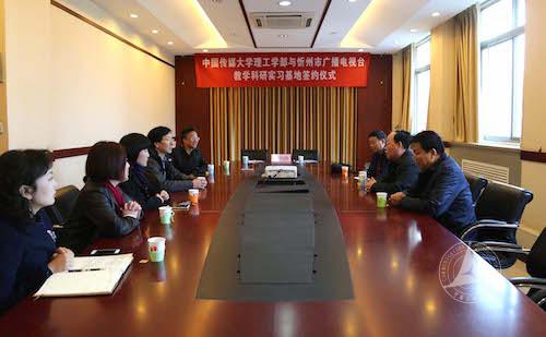 最后,理工学部与忻州市广播电视台共同签署了《共建教学科研实习基地合作协议》,协议将致力于为我校学生打造优秀校外实习实践平台的同时,能够为忻州广电的发展提供相应的技术支撑与智力支持。