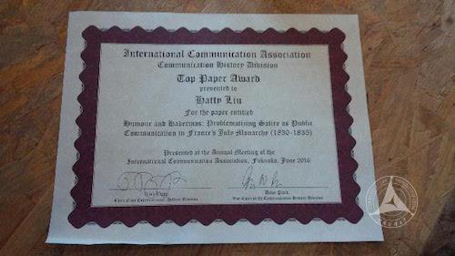 此次,刘希洋同学的获奖论文题为《幽默与哈贝马斯:法国七月王朝时期的讽刺与公共传播,1830-1835》(Humour and Habermas: Problematizing satire as public communication in France's July Monarchy, 1830-1835)。文章获得了多位传播学界顶级评审的好评,在双盲评审中获得最高分数,被授予“传播史研究最佳论文奖”。该文以哈贝马斯的“公共领域”理论为基础,讨论了在1830到1835年间法国七月王朝时期,以讽刺、幽默见长的法国政治漫画的悠久历史和独特之处。通过对“公共领域”(public sphere)及“讽刺传播”(satiric communication)两个核心概念的批判分析,该文阐释了在话语权和公共资源的分配上产生的社会差异。