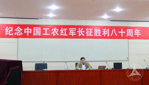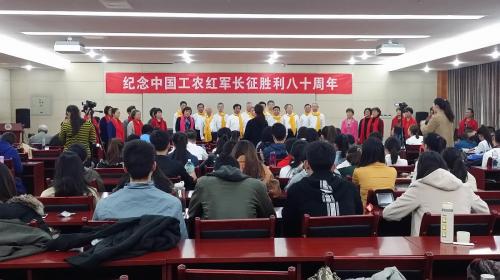 (通讯员 孙中一 韩梦 摄影 郭晓军)10 月 22 日上午,学校关心下一代工作委员会联合学校老教授协会、离退休人员管理处、播音主持艺术学院共同举办活动,纪念中国工农红军长征胜利80周年。参加活动的有学校关工委委员、学校教授合唱团的老师、离退休处负责人和各学部学院师生代表150余人。纪念活动由学校关工委副主任冯克庄主持。