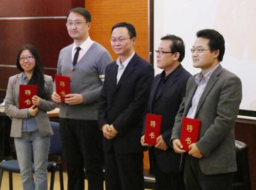 最后,张龙、任孟山、曹三省、何雪莲四位老师受聘成为本届学术节的专家评审委员会委员,张鸿声院长为他们颁发了聘书。
