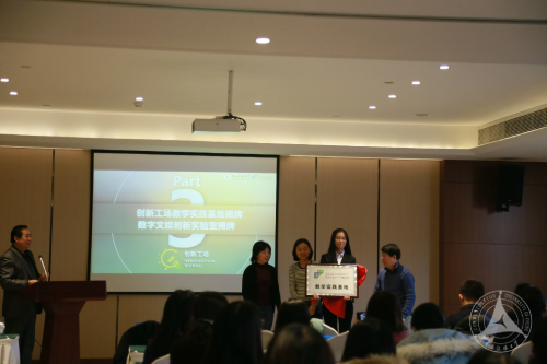 会上,创新工场任莉、教务处副处长许一新、经管学部经济与管理学院院长任锦鸾为共建教学实践基地与数字文娱创新实验室揭牌。