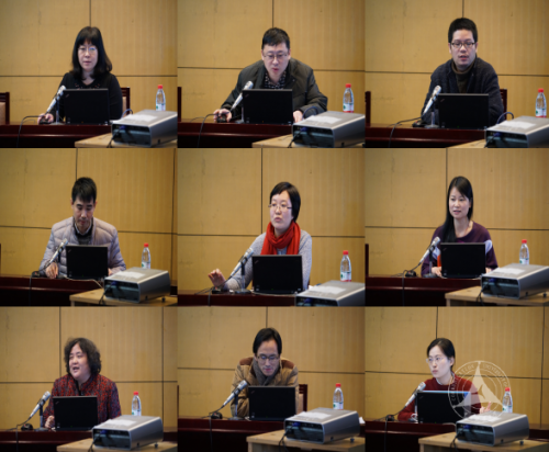 承担校级教学改革项目课题负责人逐一从项目的缘起、背景分析、项目主要内容、实施过程、初步成效、存在问题、反思及后续实施设想等板块进行汇报。通过PPT演示,运用数据、图片、视频等方式对各自的项目进行了展示。古代教研室主任王永、法律基础教研室主任韩新华分别以 “以教学促发展”、 “以建章立制为核心的教研室建设”为主题,从教研室教研活动及成果、教改心得,制度建设,课程建设等方面作经验介绍。