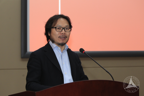 雅克•贝汉发表讲话,他对受聘为学校的名誉教授和中国纪录片学院奖评委会荣誉主席感到荣幸,并向在场师生阐释了纪录片对于当今社会和人类自身的意义。