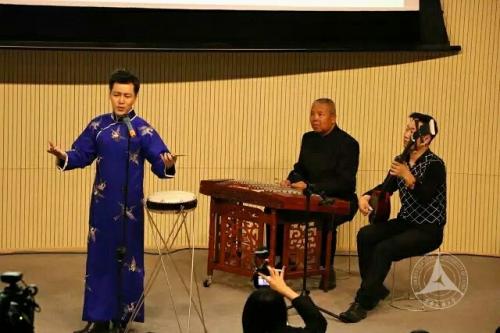 曾毕业于我校的相声快板演员张程首先拉开晚会序幕,接着赵丽敏老师又用一捧沙讲述了自己与非遗青年的故事,沙画表演惊艳了全场;然后是吕氏姐妹(吕香凝、吕佳璇)带来的古筝名曲——渔舟唱晚,作为聋哑人的她们在无声世界里弹奏出的空灵琴声让人返璞归真;方浩然老师的口技表演在传统口技基础上发展创新,增加了现代声音特效的演绎;“中国魔术狂人”田学明先生的古彩戏法也让人称奇,他邀请一众孩童上台参与,双方互动妙趣横生。