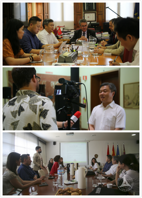 7月22日,代表团一行赴西班牙穆尔西亚大学访问。穆尔西亚大学高度重视我校来访,副校长贝尔纳多·卡斯卡莱斯萨利纳斯先生在校长办公室亲切会见了代表团成员。双方就2003年以来我校与穆尔西亚大学的西班牙语学生交流项目,以及2010年以来依托欧盟伊拉斯谟(ERASMUS)的教师交流互访项目进行了回顾,对未来合作领域进行了展望。圆桌会谈后,廖祥忠副校长接受了穆尔西亚大学电视台采访,表示应在过往合作基础和现有合作框架下,探索暑期学校等新模式、新思路,在扎实西语学生交换项目的同时开拓非语言专业的交流和互访。